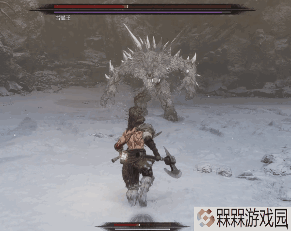如雪魈王会直接从地面搬出一大块石头,跳跃砸向玩家,让我想到某个虎姓疯男子。